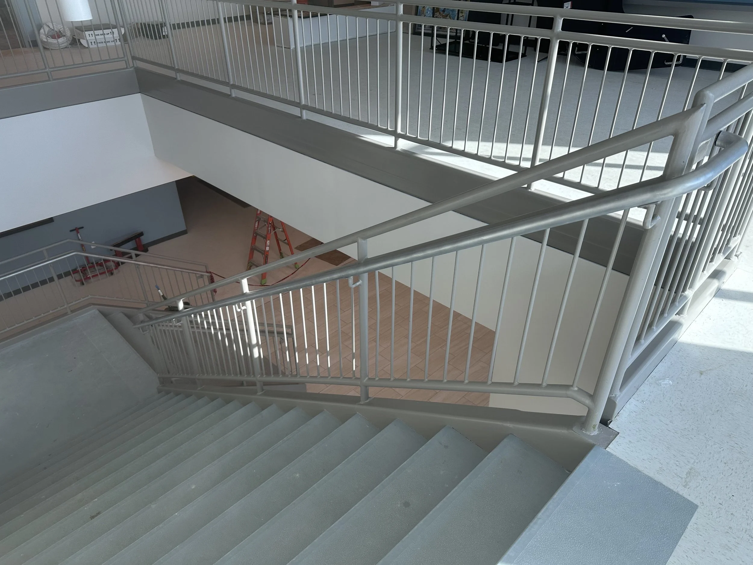 At Great Hearts Story Road, we installed a custom-fabricated aluminum handrail system across three staircases—delivering a clean, durable, and modern safety solution tailored to the school’s design and daily use.